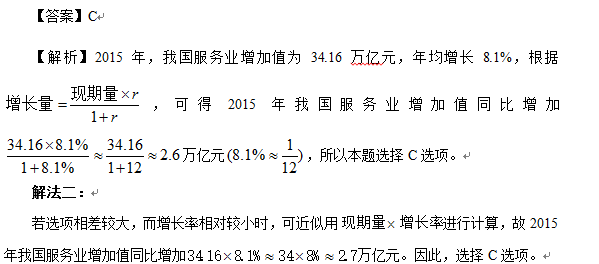 【例1】按年均增长率为8.1%计算,2015年我国服务业增加值同比增加了( )