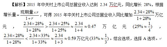 【例2】2015年与2014年相比,中关村上市公司总营业收入增加了( )