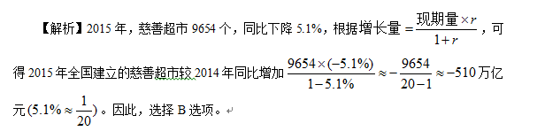 【例3】2015年,全国建立的慈善超市较2014年约( )